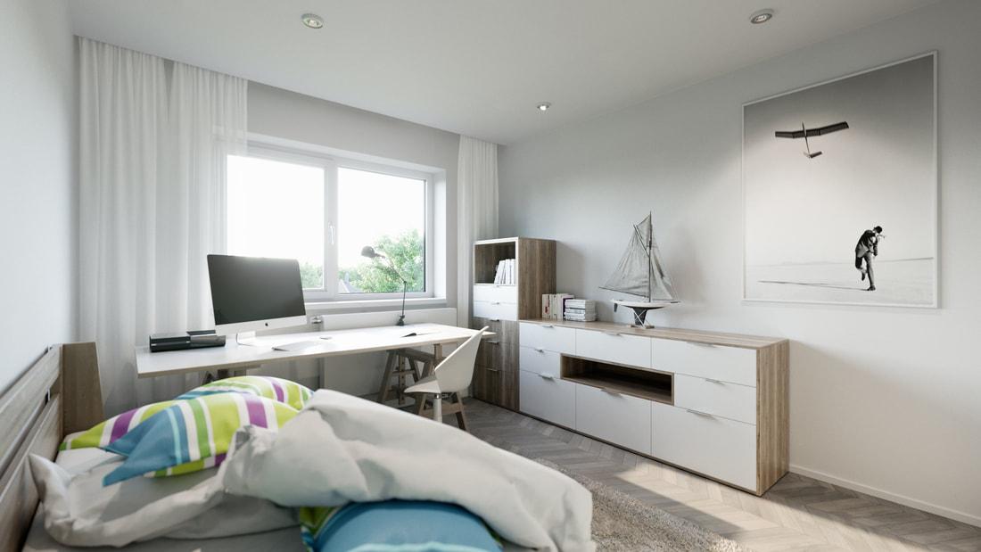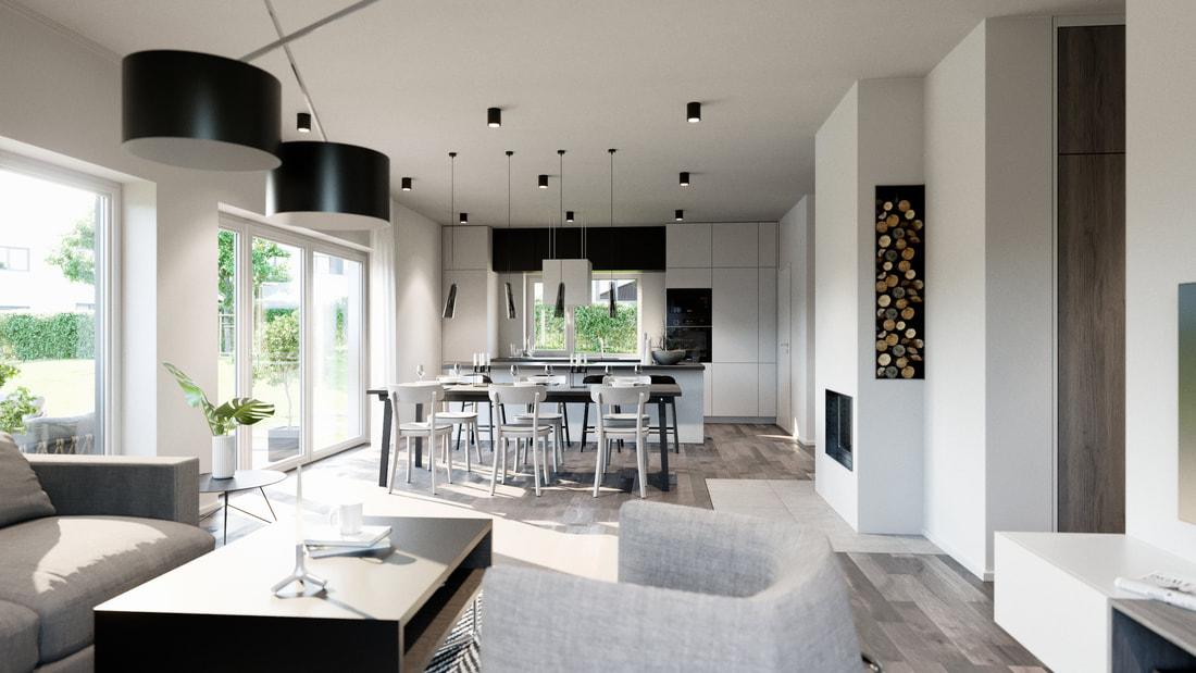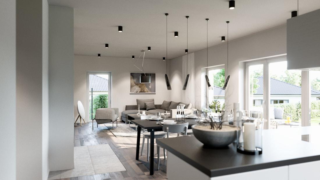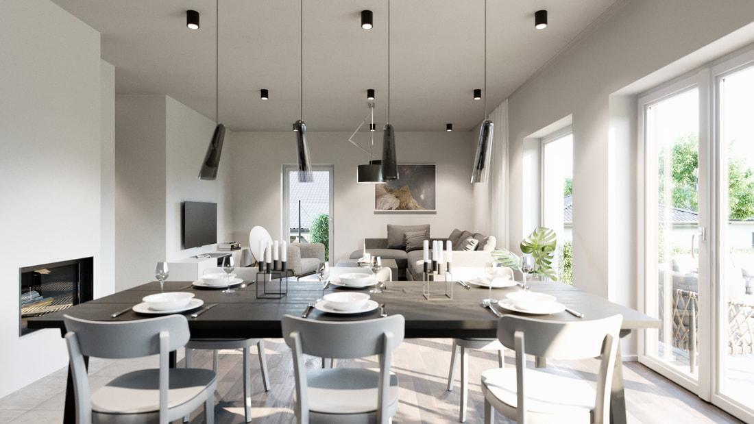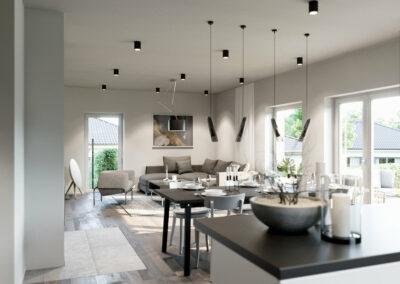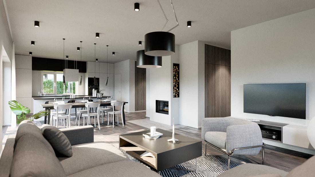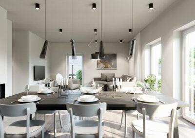 Veškeré prostory jsou prosluněné díky velkoryse řešenému prosklení. Oceníte praktické a promyšlené vnitřní uspořádání a nadstandardní použité materiály.
